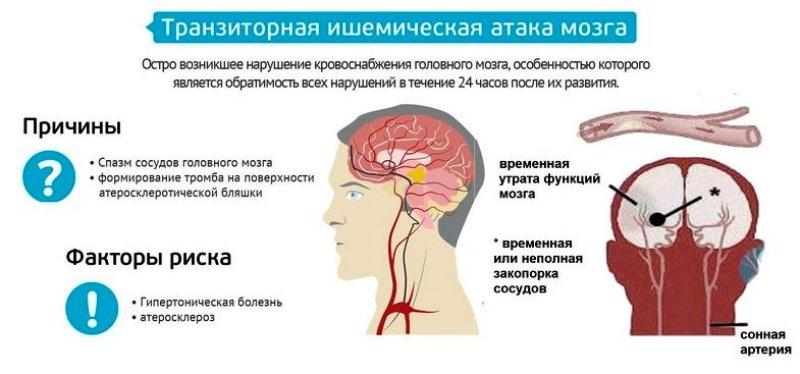 У некоторых людей есть так называемая транзиторная ишемическая атака. Этот «мини-инсульт» происходит из-за временной блокировки артерии.