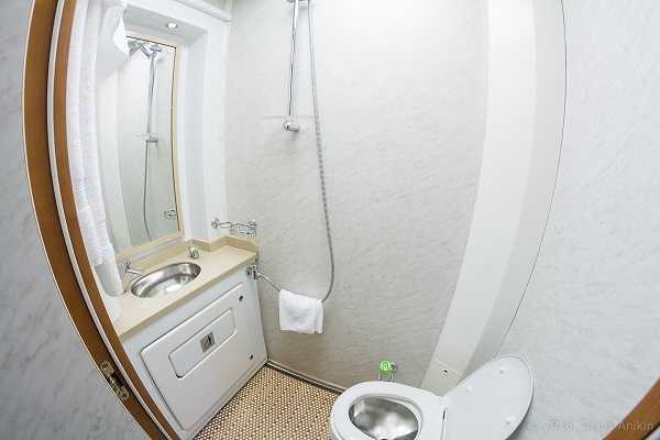 Туалеты общего пользования расположены в конце каждого вагона и поддерживаются в чистоте и порядке на протяжении всего путешествия.