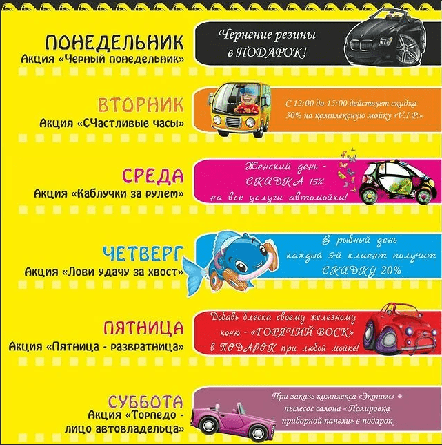 - продавать абонементы, позволяющие чуть дешевле мыть автомобиль;
