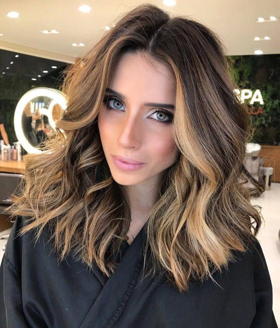 Техника окрашивания находится на пике популярности. Позволяет создавать мягкие переходы между разными оттенками, как более спокойными, так и более яркими. Зеленоглазым модницам можно рассмотреть несколько интересных вариантов на средние волосы. Сочетание светлой карамели и темного каштана с легкими волнами освежит образ и сделает локоны более блестящими. Также за основу могут браться несколько тонов каштанового и светло-русого.