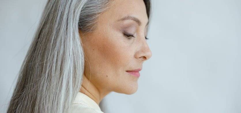 Изящно смотрятся необычные и редкие оттенки – смородиновый цвет, сочной вишни, а также марципана. Интересно двухцветное окрашивание волос – оно великолепно сочетается с серыми глазами. Технику можно выбирать любую – блонд омбре, колорирование или мелирование. Помимо необычного эффекта она скроет недостатки лица, дефекты кожи. Вне зависимости от выбранного цвета в зрелом возрасте очень важны процедуры по уходу за волосами и кожей – регулярные питательные маски, бальзам, состригание секущихся кончиков.