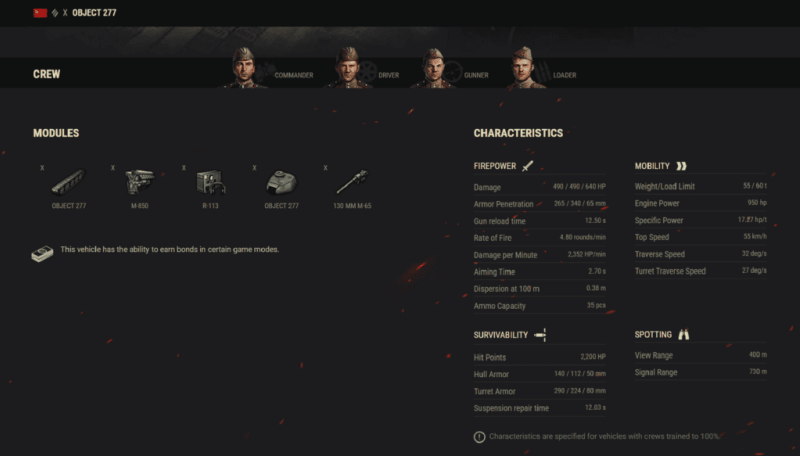 Стандартная для тяжелых танков низкая маневренность включает в себя следующие характеристики: