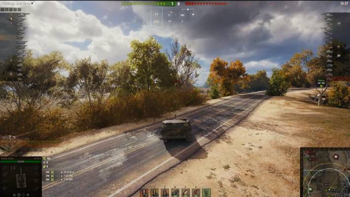 Плюсы: максимальный обзор в 420 м, две пушки на выбор, хорошая точность и стабилизация у 105-мм орудия, экраны по всему корпусу танка, кроме башни.