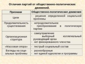 Есть и другие особенности общественно-политических движений, отличающие их от политических партий. Перечислим их.