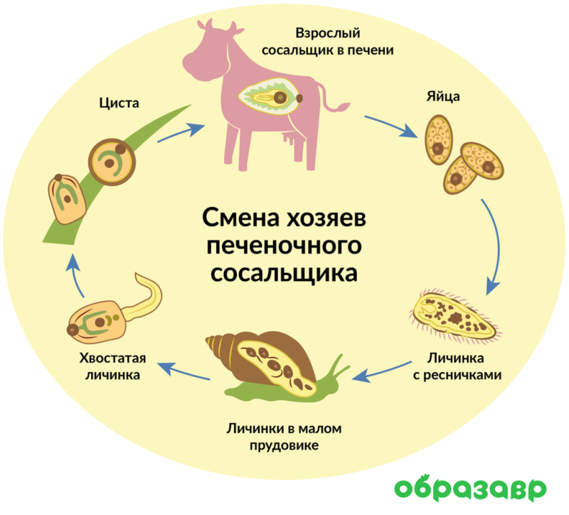 У сосальщиков сложный жизненный цикл, необходимый для эффективного размножения. На разных стадиях развития у них меняются хозяева. Так, улитка малый прудовик — промежуточный хозяин печеночного сосальщика, в котором размножаются личинки.