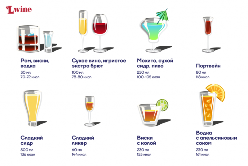 Количество калорий в напитке рассчитывается исходя из содержания этанола: каждые 100 мл спирта дают около пяти килокалорий. Чтобы считать было удобнее, пользуются «стандартной алкогольной единицей», по-английски – unit (порция). В разных странах ее величина отличается, но в среднем составляет 10 граммов этанола (такова норма в России и во Франции). В Скандинавских странах она доходит до 12 г в Великобритании, наоборот, меньше – 8 г или 10 мл.