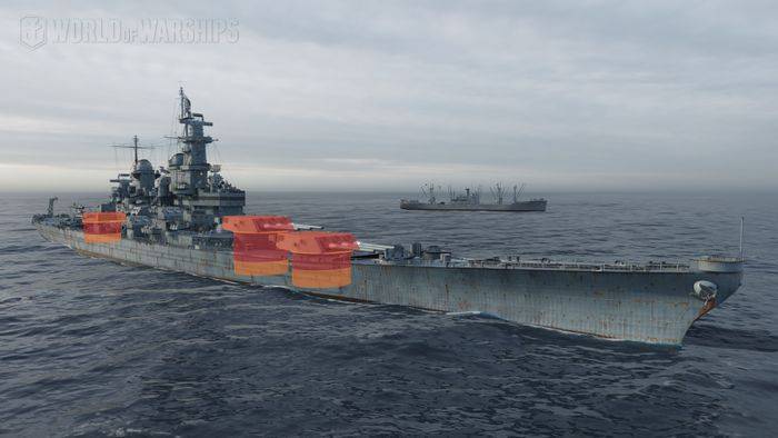 - время работы снаряжения 20 секунд (дольше, чем у других линкоров IX уровня);