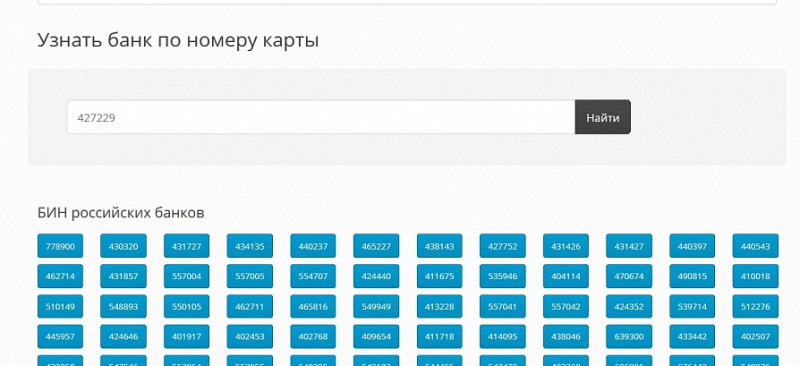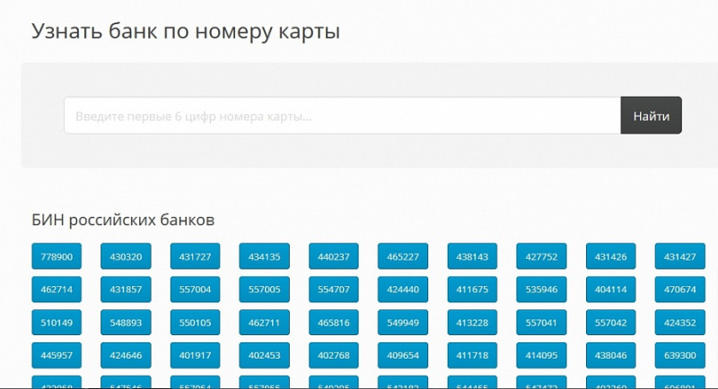 Используя сайт или программу, чтобы узнать банк по номеру банковской карты, помните, что вводятся только первые цифры. Внимательно подойдите к выбору сервиса для определения: он не должен запрашивать приватные данные (срок действия, CVV-код, пин-код и др.). Здесь обязательно должна быть актуальная база БИН, кликнув на любой из которых, можно получить необходимые сведения.