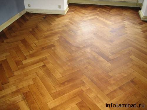 Одна из особенностей паркета, которая отличает его от ламината, заключается в том, что после укладки планок, их лицевую поверхность необходимо дополнительно обрабатывать – шлифовать и покрывать лаком или масло-воском для защиты от негативных воздействий (истирающих и механических нагрузок, воздействия лака). Впоследствии этот слой потребуется обновлять. В то время как ламинат никакой дополнительно обработки не требует.
