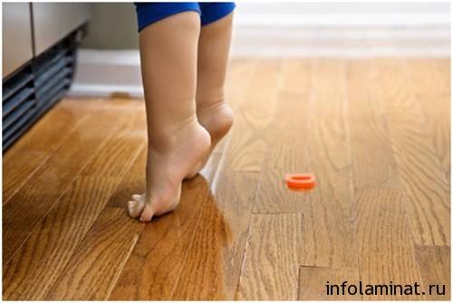 Ухаживать за ламинатом и паркетом несложно. В обоих случаях проводится влажная уборка хорошо выжатой салфеткой или тряпкой, но, в случае с ламинатом, следует быть осторожней – разлитая вода может стать причиной порчи ламелей.