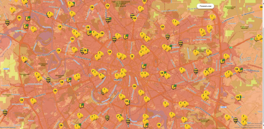 На официальном сайте «Билайна» нельзя уменьшать карту и посмотреть Московскую область. Но видно, что в столице сигнал есть почти везде (исключение – территория Алексеевского лесопарка, Кунцевского леса, части Горенского лесопарка).
