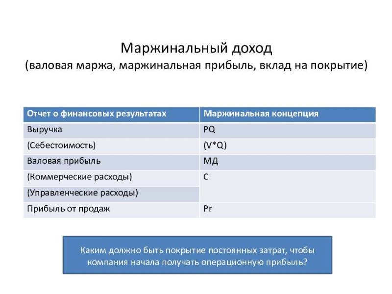 Чтобы ее рассчитать, берут во внимание только переменные затраты без учета остальных
