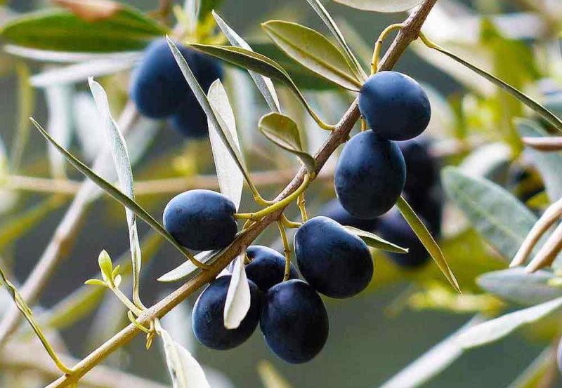 Плоды напоминают мелкие сливы с маслянистой мякотью и восковой кожицей. Сбор урожая происходит с ноября по январь. Зеленые оливки аккуратно обрывают, а спелые темно-фиолетовые стряхивают. Весь урожай сразу идет на переработку.