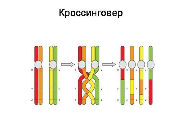 - Процесс кроссинговера. Происходит в профазе первого деления. Сам процесс — перекрест определённых генов-аллелей, которые создают ещё один тип изменчивости признаков и индивидуальный набор в каждой гамете. Таким образом, у потомства появляются отличные от родителей признаки.