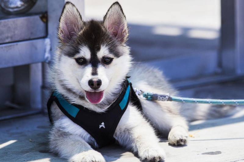 При первом взгляде кажется, что это миниатюрная копия хаски, черно-белый окрас и голубые глаза завершают сходство. Но питомец обладает удлиненным туловищем и короткими лапками, как корги.