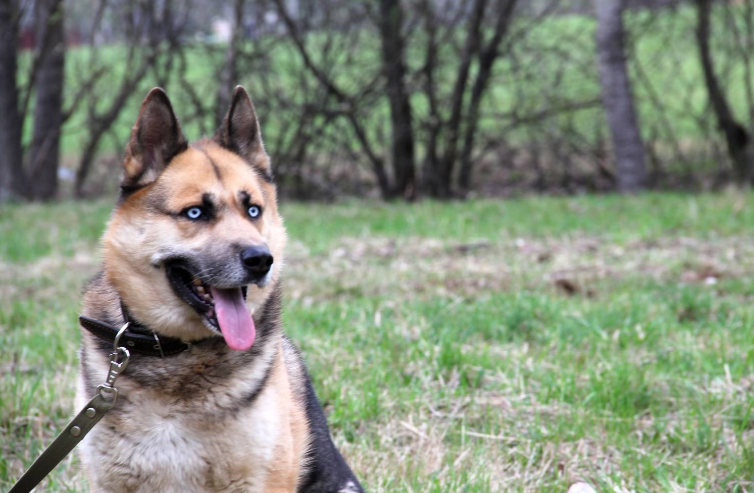 Эта собака очень похожа на овчарку, но глаза выдают предка-хаски