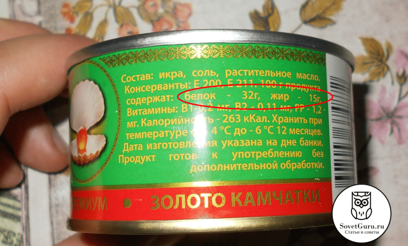5. Прочитайте состав. Настоящая красная икра содержит 15 – 32% белка, что и должно быть обозначено на упаковке. Имитированная – производится из водорослей, рыбного бульона или рыбьего жира. Белка в ней совсем мало – около 2% – или вообще нет. Что тоже указано на упаковке.
