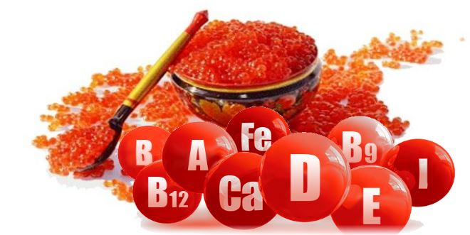 В красной икре 31% белка и 13% жира. Ее энергетическая ценность — 230-249 ккал. Белки икры содержат все незаменимые аминокислоты: лейцин, изолейцин, валин, метионин и цистин, лизин, фенилаланин, треонин, триптофан, а также заменимые — глютаминовую и аспарагиновую кислоту, аланин, гистидин. В липидах (жирах) икры в высокой концентрации содержатся ненасыщенные жирные кислоты (омега-3) и эссенциальные жирные кислоты (линолевая, линоленовая и арахидоновая).
