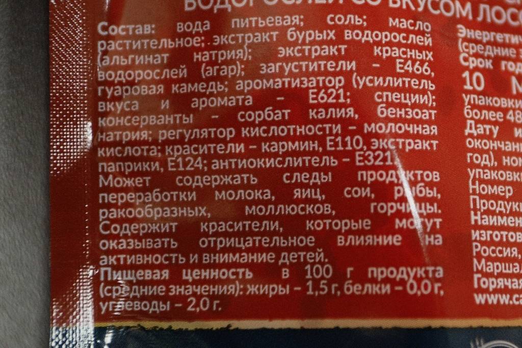 К составу любого продукта нужно относиться с большим вниманием. На этикетке не должно быть надписи искусственная икра или уротропин( вредное вещество)