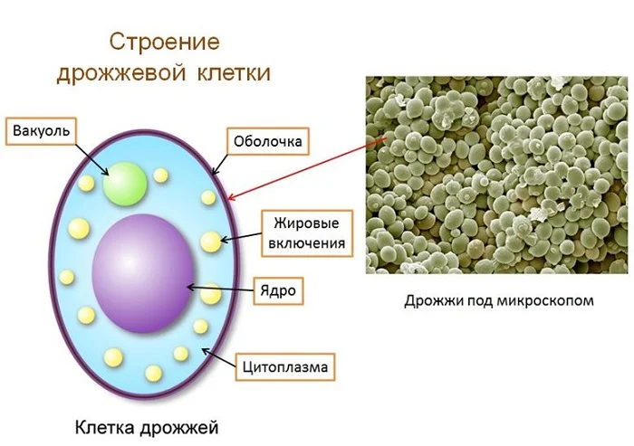 Плесневый гриб мукори дрожжи являются одноклеточными грибами. Наиболее примитивно устроенными считаются дрожжи. Их тело представляет собой одну клетку округлой формы. Имеется оболочка, под которой расположена цитоплазма и ядро.
