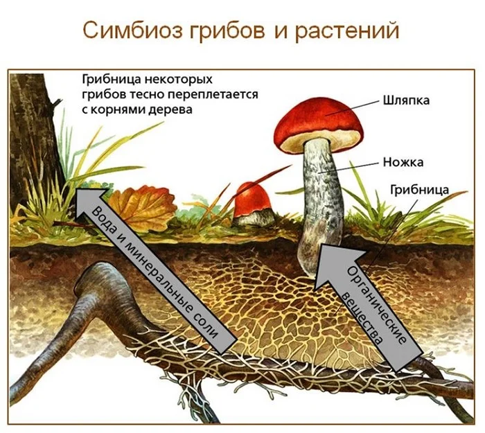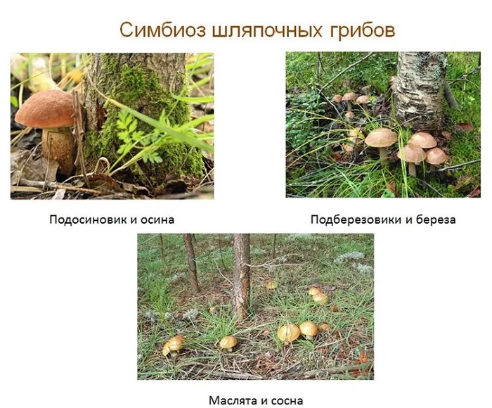 Часто название шляпочных грибов указывает на симбиоз. К примеру, гриб подосиновик способен существовать только рядом с осиной, подберезовик – рядом с березой.