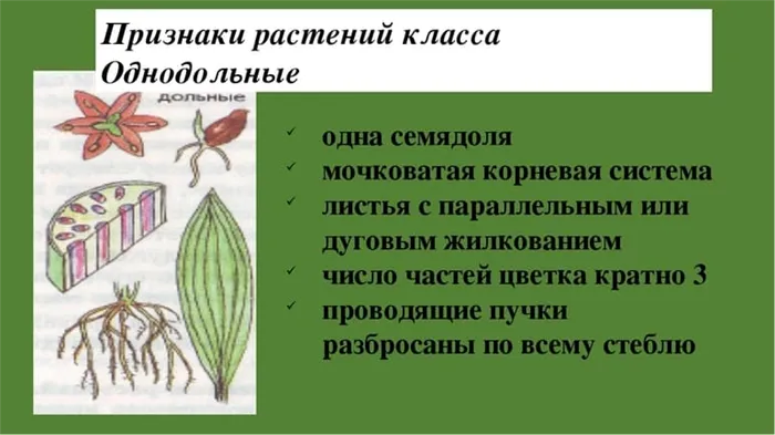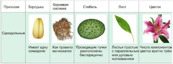 Особенности однодольных растений