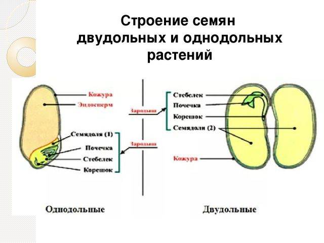 Чем различаются зародыши двудольных и однодольных растений? Начнем с того, что в процессе развития зародыша сравнение однодольных и двудольных бессмысленно: строение семян двудольных растений ничем не отличается от строения семени однодольных растений.