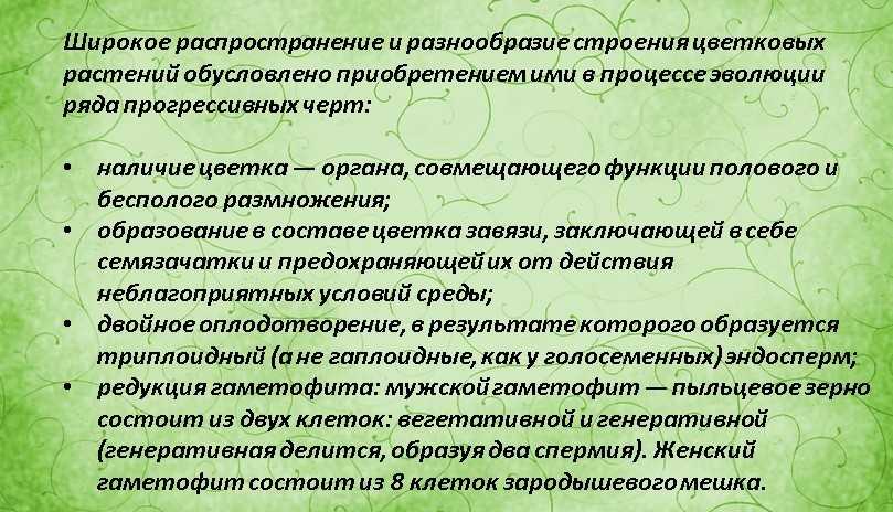 Характерные особенности покрытосеменных позволило им занять более высокую нишу в классификации растений, т.е., они являются более прогрессивными.