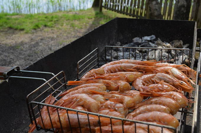 4. Готовить ракообразных на гриле можно двумя способами: нанизать на шпажки или шампуры или выложить на решетку, слегка смазанную растительным маслом.