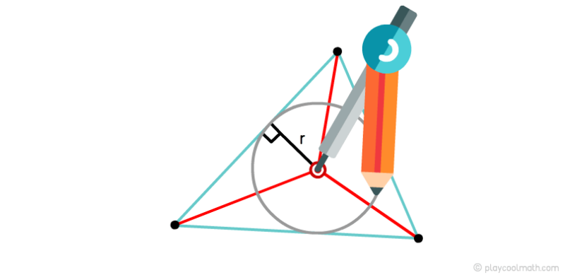 Центром пересечения биссектрис, как мы знаем, является инцентром. Инцентром еще называют центром вписанной окружности. Если от инцентрома до любого основания измерить расстояние по перпендикуляру, то мы получим радиус вписанной окружности.