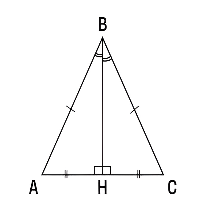 Отрезки АН и СН также равны, поэтому ВН — это медиана. При одинаковых значениях углов у точек А и С сумма двух углов по обе стороны от точки Н будет равна 180 градусов. Значит, каждый угол равен 90 градусов, что доказывает, что ВН — это высота.