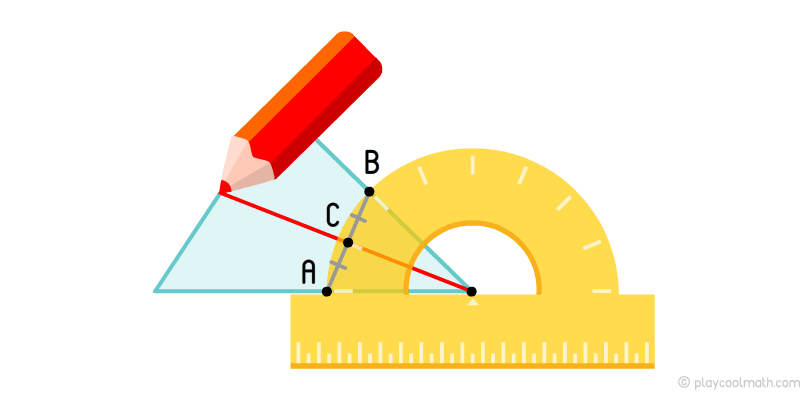 Проведи отрезок через эти точки. Визуально или с помощью линейки найди середину этого отрезка и обозначь ее как точку C. На линии, проходящей из вершины к точке C, будет лежать наша биссектриса. Повтори все действия для каждой вершины треугольника.