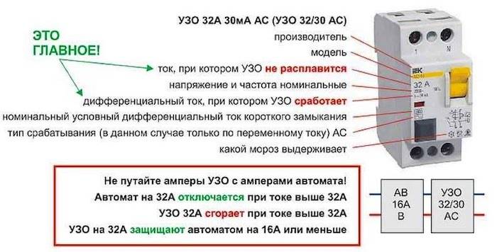 Обратите внимание! Этот показатель не следует путать с номинальным током рассматриваемого устройства. Именно этот параметр следует принимать за основу при расчёте того, какое количество автоматов можно одновременно подключать к устройствам УЗО (иногда его называют нагрузочной способностью прибора). Именно этот параметр следует принимать за основу при расчёте того, какое количество автоматов можно одновременно подключать к устройствам УЗО (иногда его называют нагрузочной способностью прибора)