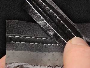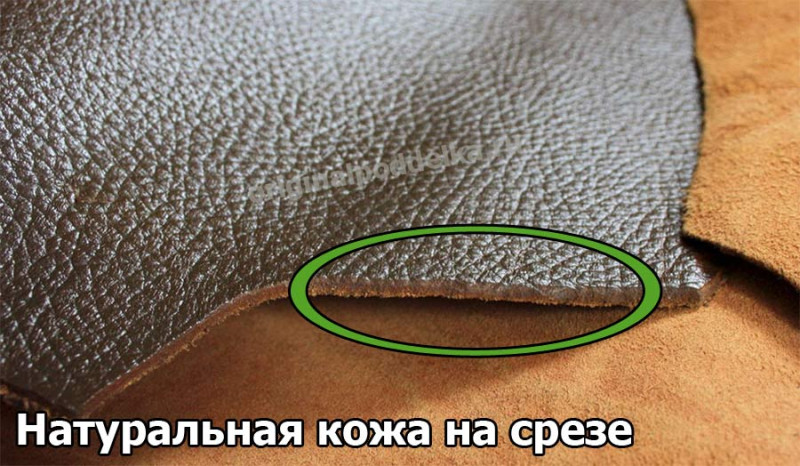 - Внимательно осмотрите место среза. Натуральный материал толще искусственного. Если вы заметите переплетающиеся волокна, то не сомневайтесь, что перед вами кожа. Тканевая основа свидетельствует о подделке.