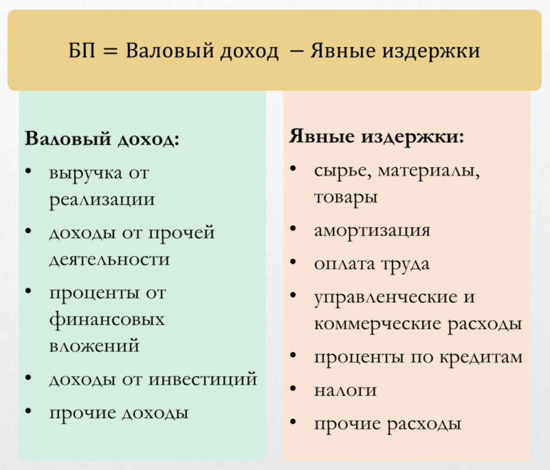 БП = Валовый доход — Явные издержки