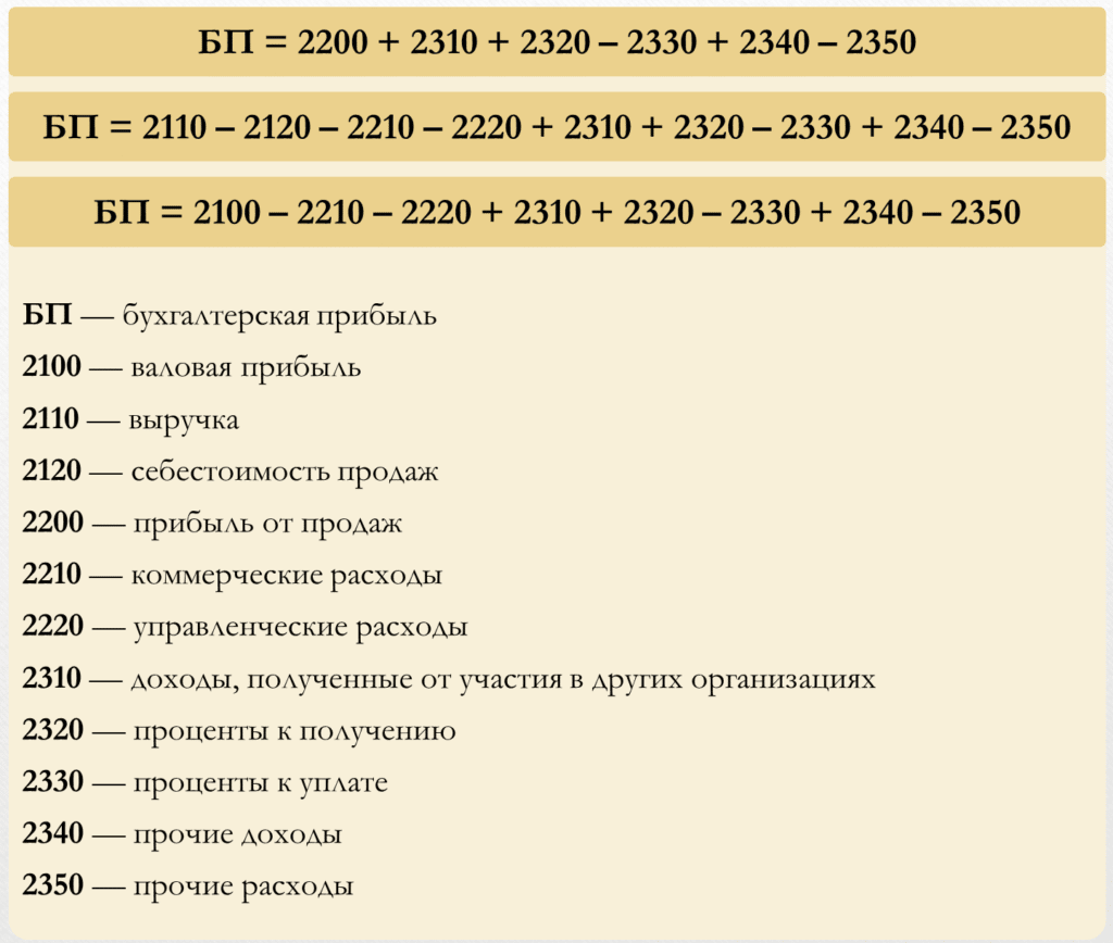 Формула бухгалтерской прибыли в общем виде
