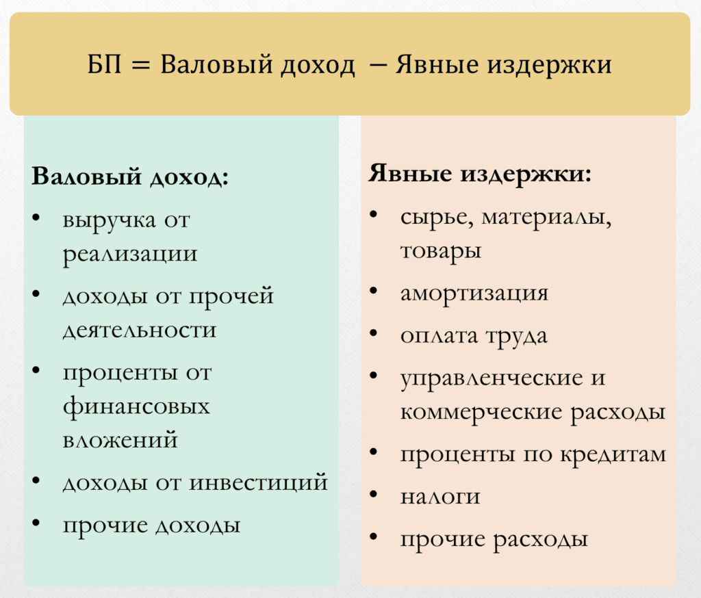 БП = Валовый доход — Явные издержки