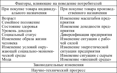 Изучение потребителей осуществляется с использованием метода их типологии – деления на группы на основе общности в потребительском поведении. Факторы, влияющие на поведение потребителей, приведены в табл. 2.2.