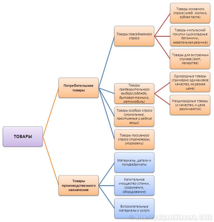 Примеры товаров: автомобили, бытовая техника, компьютеры, одежда, канцелярские товары, спортивное оборудование.