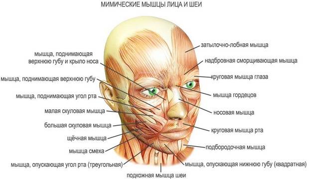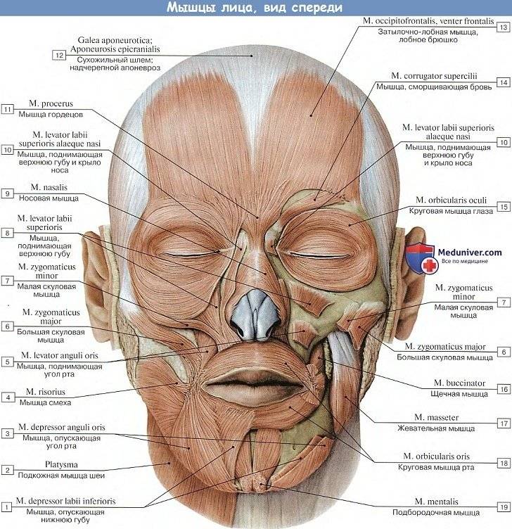 Анатомия мышц лица и шеи: фото с описанием и схемами