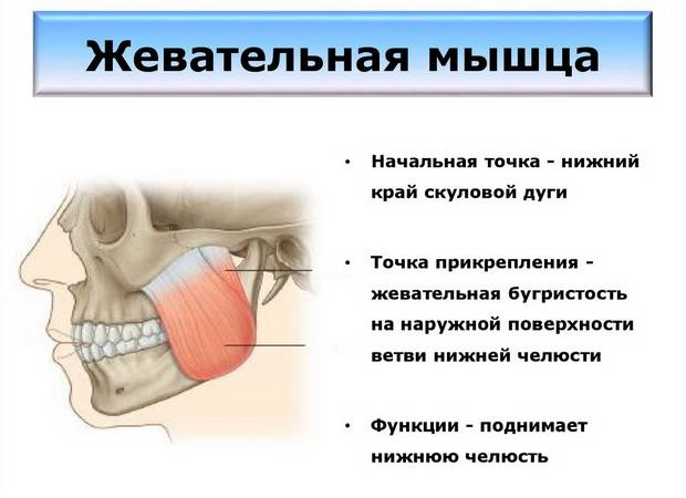 Жевательными мышцами называются те, которые, прикрепляясь на нижней челюсти, перемещают ее со значительной силой.