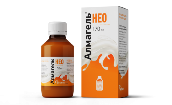 «Альмагель Нео» выпускается в коробке оранжевого средства. Он отличается от других видов «Альмагеля» тем, что в его состав добавлен симетикон. За счет него уменьшаются проявления метеоризма. Поэтому такой препарат используется при выраженном газообразовании.