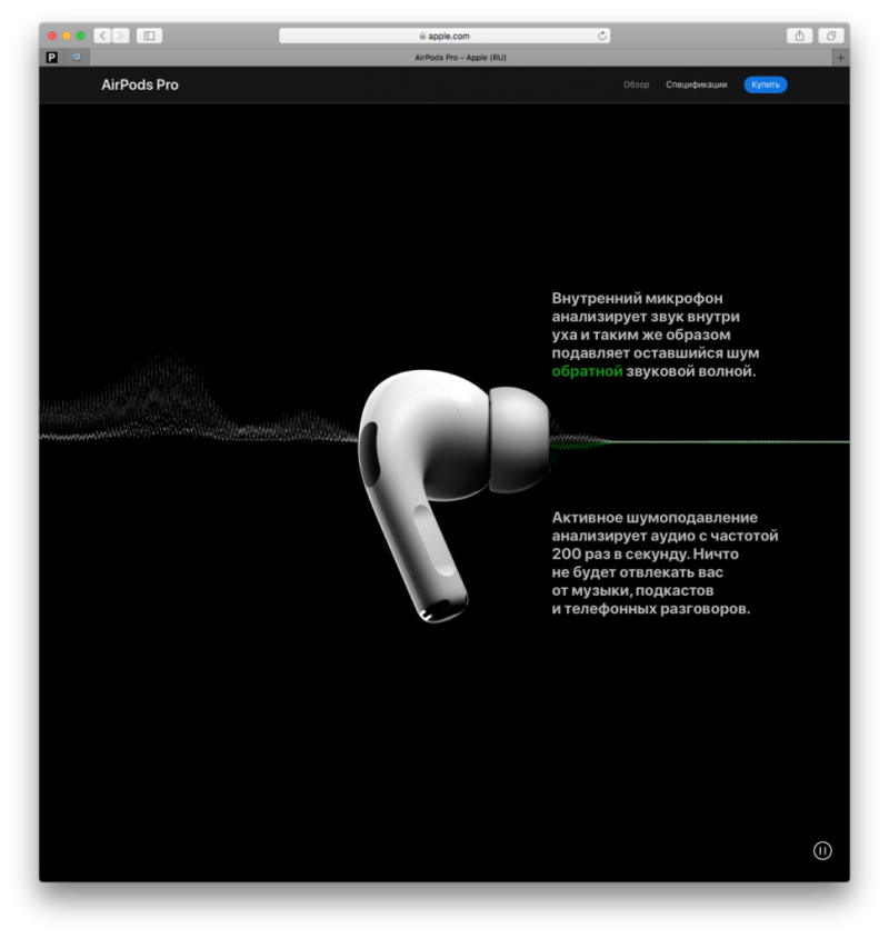 Активное шумоподавление в AirPods Pro.