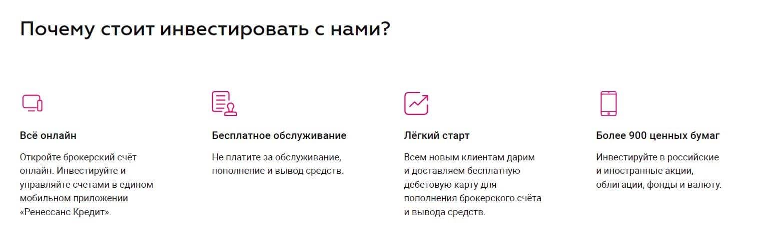 Начало деятельности «Ренессанс Брокер» в качестве посредника на фондовом рынке – 2019 год. Компания относительно молодая, но тем не менее, предлагает более 3100 инструментов для торговли. Сейчас действует акция на бесплатный перевод ценных бумаг от другого брокера.