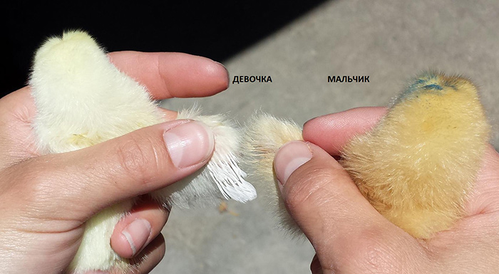Нужно обратить внимание на пух суточных цыплят. У мальчиков он светлее, и темнеет лишь через несколько дней