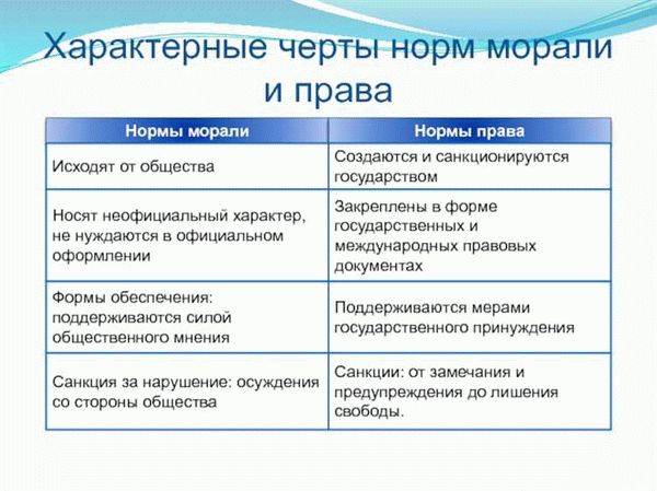 Нормы морали и нормы права имеют ряд принципиальных различий: