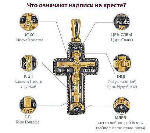 - Надпись «Иисус Назарянин Царь Иудейский» на крестах одинаковы, лишь написаны на разных языках: на католическом латинским шрифтом «INRI», на православном — славяно-русским » IHЦI». Иногда она имеет такую форму «IС» «ХС» — имя Иисуса Христа;