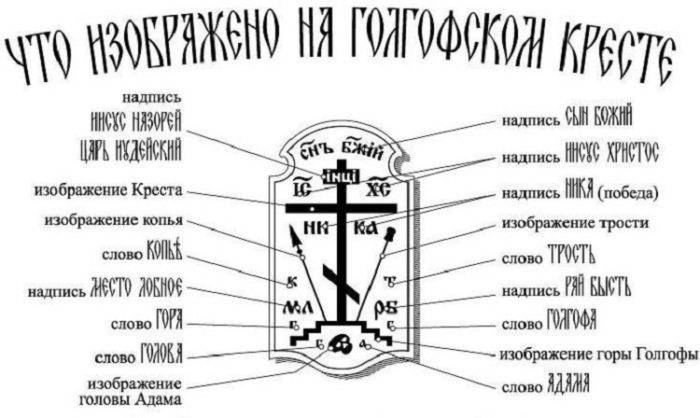 Он отличается от католического креста своей формой — на верхней части православного креста есть еще одна горизонтальная балка, которая символизирует наименование Господа Иисуса Христа: «Иисус Назарянин, Царь Иудейский».