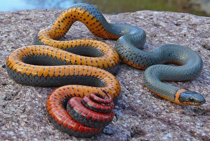 Во внешнем строении тела рептилий можно выделить три отдела: голова, туловище и хвост. У некоторых видов есть конечности с когтями – передние и задние. На голове можно увидеть различные органы чувств.
