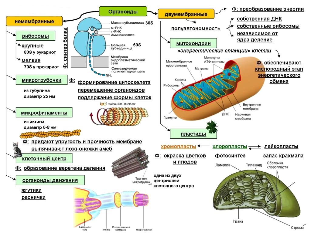| Центриоль | Во время деления клетки образует веретено деления | Нет | Нет | Есть | Нет |